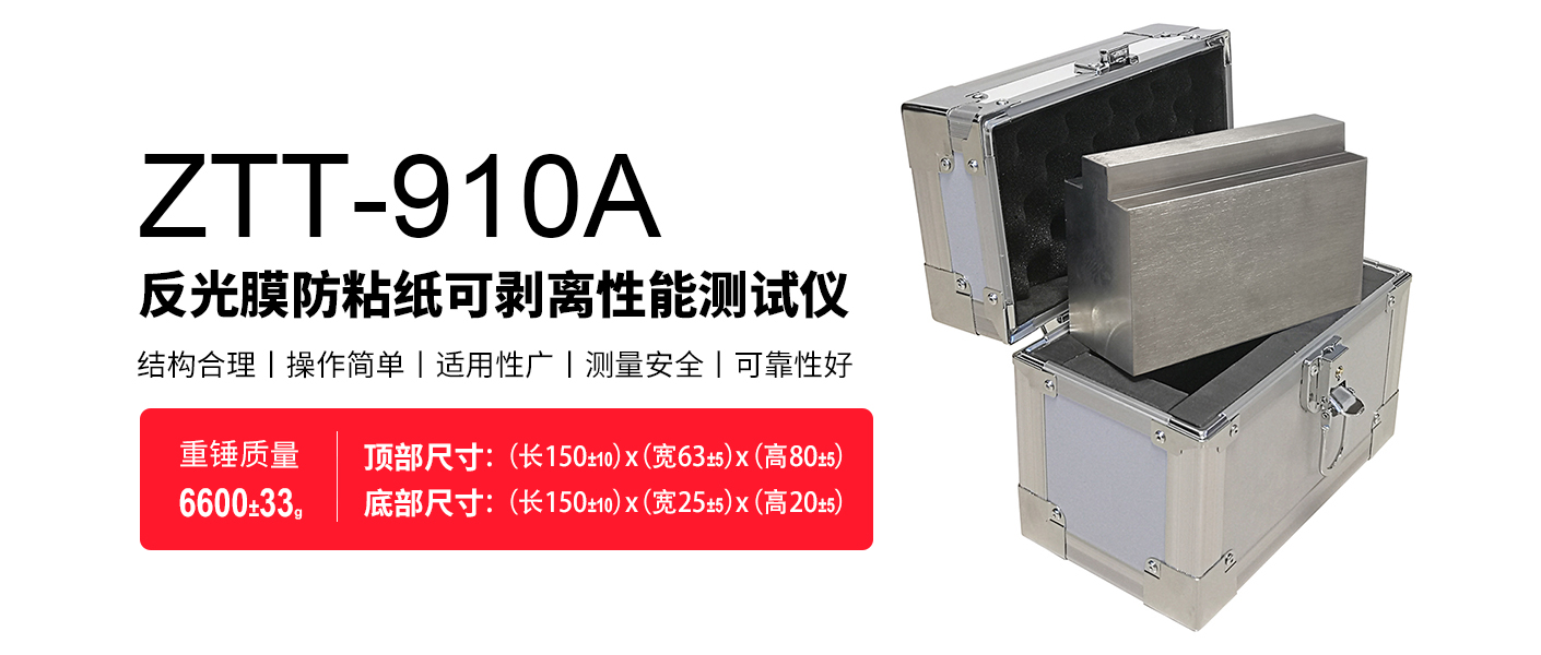 ZTT-910A反光膜防粘紙可剝離性能測(cè)試儀主要由重錘、等部件組成。(長(zhǎng)度測(cè)量工具、時(shí)間間隔測(cè)量?jī)x選配)。