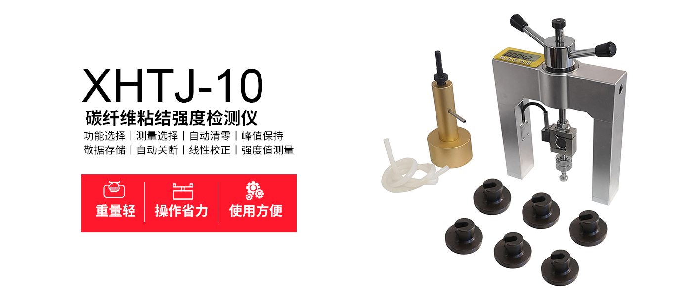 XHTJ-10型碳纖維粘結強度檢測儀(簡稱:碳纖維拉拔儀)是北京天地星火科技發展有限公司研制開發的一種新型檢測儀器,是為土木建筑結構中檢測碳纖維布與混凝土之間正拉粘結強度而研制的儀器。根據粘結強度與拉伸時的破壞形式,可立即得出試驗結果。碳纖維拉拔儀是碳纖維布加固修復施工驗收的理想檢測設備。碳纖維拉拔儀采用機電一體化設計,全套儀器為一個整體。包括手柄、傳感器、絲杠、反力支座等機械部分構成一個“門”型結構。同時將測量顯示電路嵌入到儀器內,檢測時可以直接觀測數據。碳纖維拉拔儀具有重量輕、手柄操作省力、使用方便等特點。