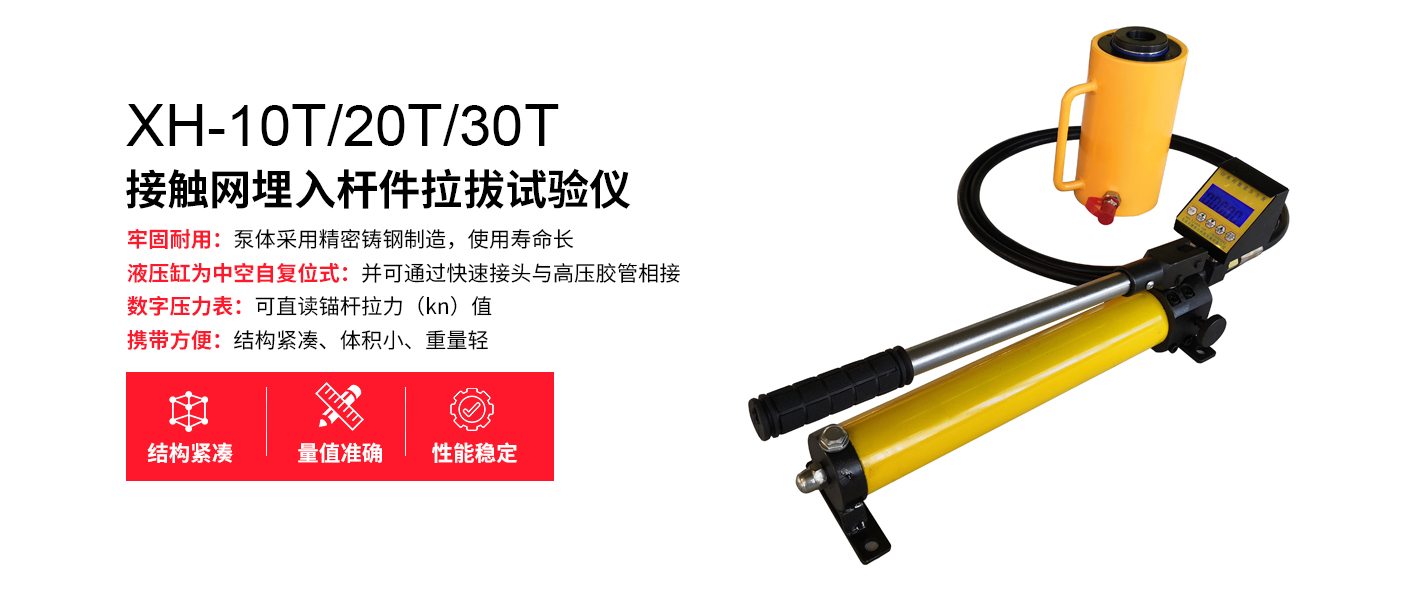 XH-10T/20T/30T型接觸網(wǎng)埋入桿件拉拔試驗(yàn)儀接觸網(wǎng)埋入桿件拉拔試驗(yàn)儀是一種專(zhuān)門(mén)用于測(cè)試接觸網(wǎng)系統(tǒng)中埋入桿件(如錨栓、支撐桿等)與基材之間附著強(qiáng)度的設(shè)備。通過(guò)施加垂直的拉拔力,該儀器能夠測(cè)量埋入桿件的附著性能,適用于鐵路接觸網(wǎng)等交通工程領(lǐng)域,確保桿件的穩(wěn)定性和系統(tǒng)的正常運(yùn)行。