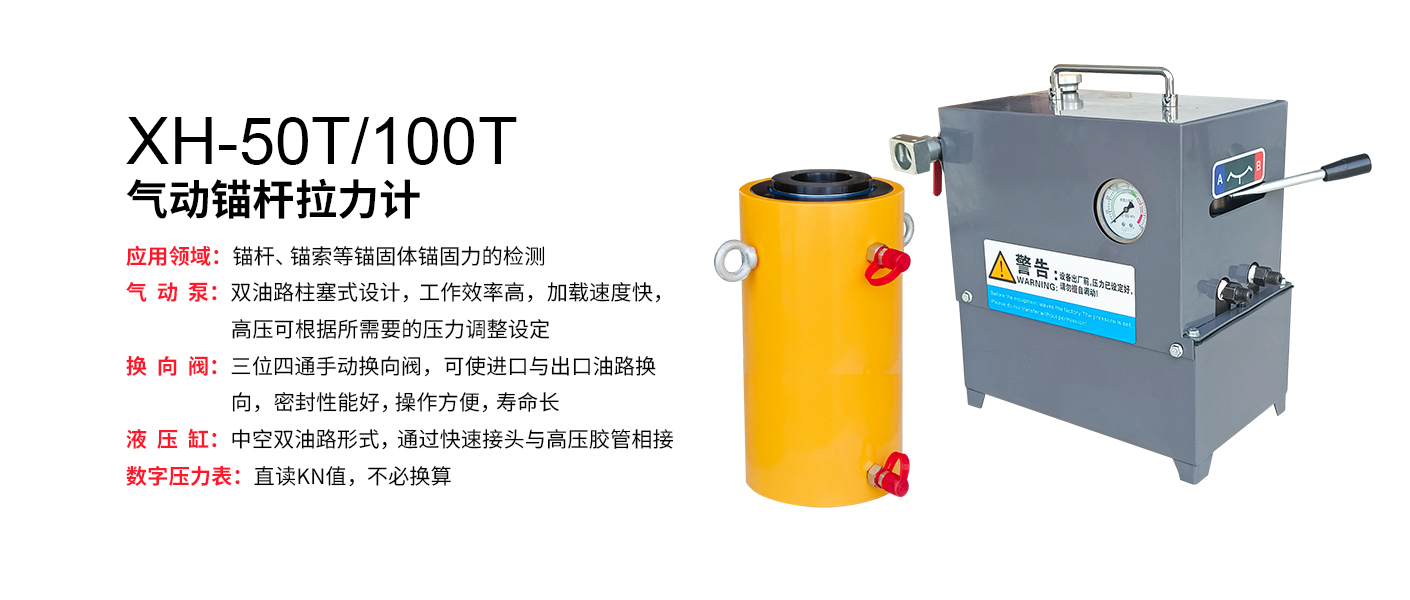 由北京天地星火科技發展有限公司研制生產的XH-50/100T型系列氣動錨桿拉力計適用于錨桿、錨索等錨固體錨固力的檢測,是錨桿錨索施工質量及安全防護檢驗常用儀器。