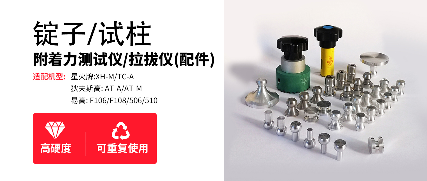 錠子:用于拉拔試驗、附著力實驗的重要配件。材質(zhì)有鋁制合金和不銹鋼,硬度高,可重復使用。