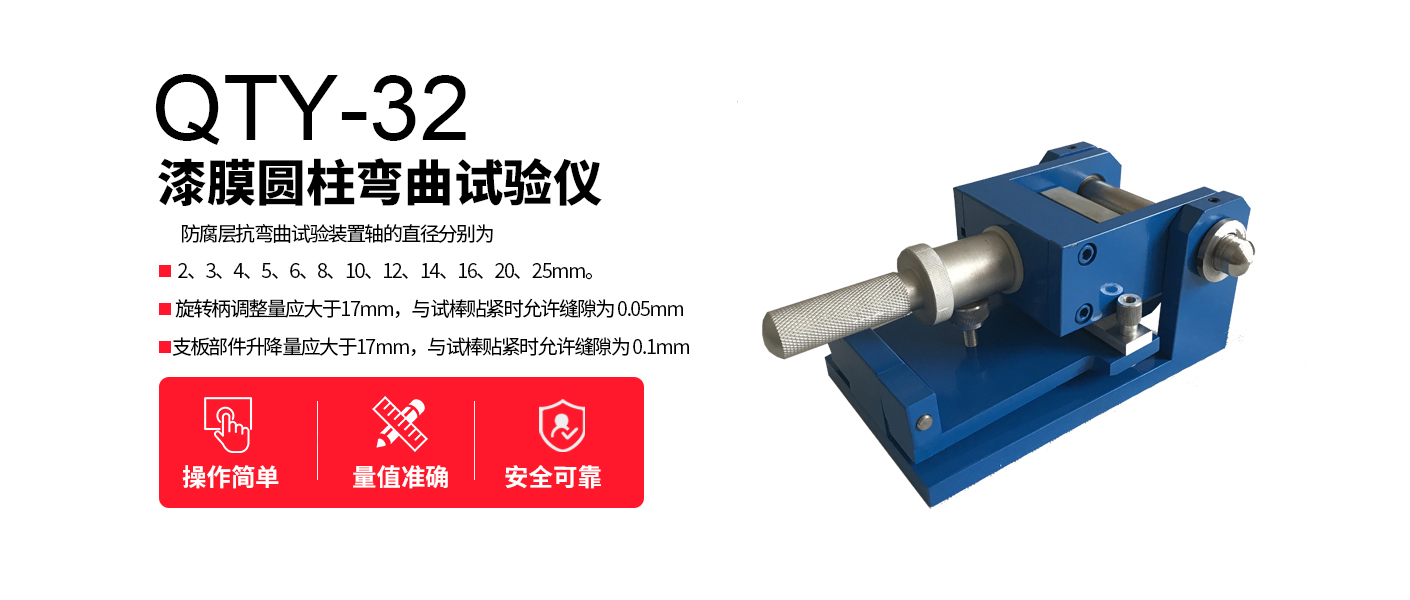 由北京天地星火科技發(fā)展有限公司研發(fā)的QTY-32漆膜圓柱彎曲試驗儀主要適用于測定色漆和清漆的涂膜柔韌性,是衡量涂料性能的主要指標(biāo)之一,對于涂料品種的選擇,應(yīng)用有一定的參考價值。漆膜圓柱彎曲試驗儀是評價色漆、清漆和有關(guān)產(chǎn)品的涂層,標(biāo)準(zhǔn)條件下繞圓柱軸彎曲時的抗開裂或從金屬板上剝離的性能的常用儀器,符合GB 6742等相關(guān)國家標(biāo)準(zhǔn)。