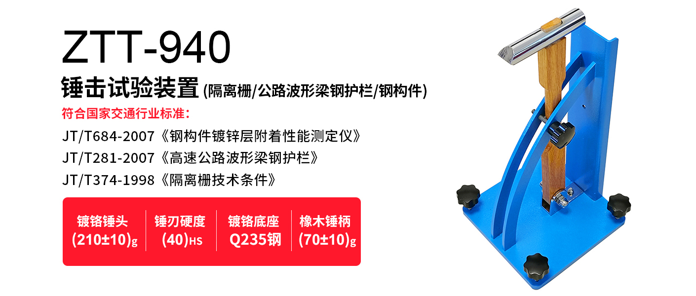 ZTT-940錘擊試驗裝置,適用于熱浸鍍鋅層附著性試驗,如隔離柵和波形梁鋼護欄等公路專用鋼構(gòu)件。